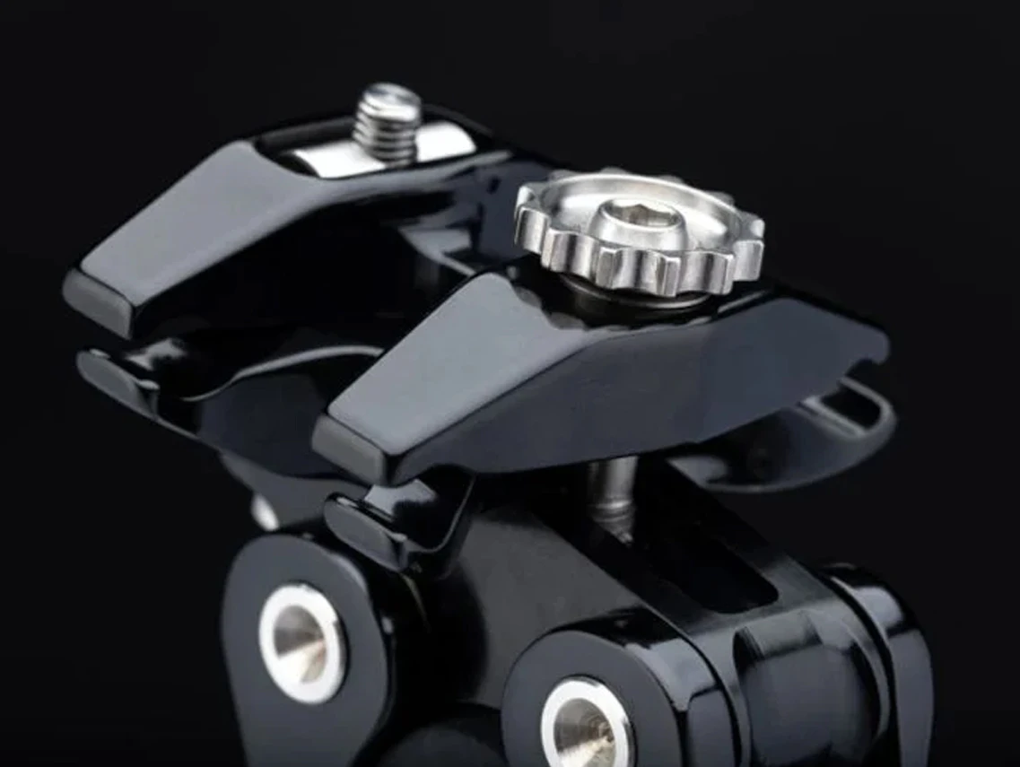 Equipped with a titanium thumb wheel for the forward seat clampbolt, and updated stainless steel pivot axles.