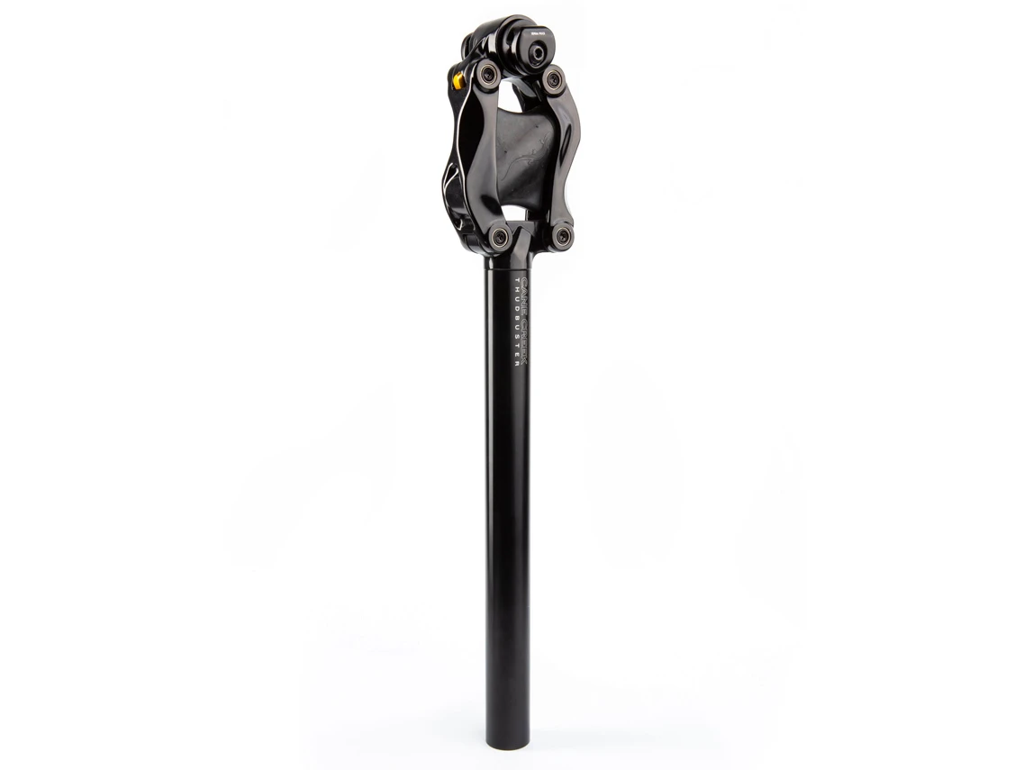 They are now proud to announce the latest evolution to that legacy with the all-new Thudbuster LT. The new Thudbuster LT is superior to its predecessor in every way. Building on Thudbuster’s proven parallel linkage technology we have completely re-designed the seatpost for increased durability, additional suspension travel, as well as ease of use through tool-free elastomer change and a single-bolt seat clamp design. By improving on this already legendary design, we’re confident to say that the newest generation Thudbuster is the most advanced suspension seatpost ever made.