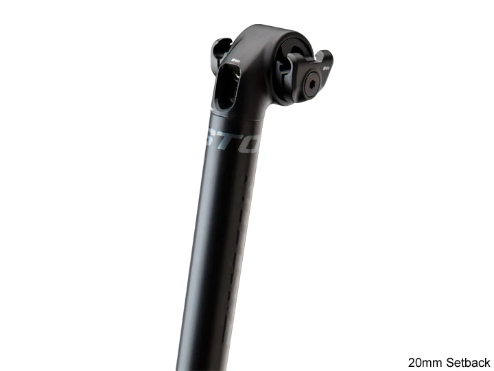 The newly redesigned EC70 Seatpost takes their superlight unidirectional carbon and applies their patent pending ISA technology – Independent Saddle Adjustment – which allows for completely independent fore-aft adjustment and saddle adjustment.With the 2 pitch adjustment bolts, the saddle angle gets locked into place as if you were adjusting limit screws, and unlike single bolt designs, you get adjustability and security. Available in 20mm Setback and Zero configurations.